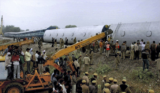 > 印度一火車發(fā)生脫軌事故 造成數(shù)十人傷亡