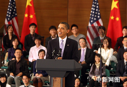 > 美國(guó)總統(tǒng)奧巴馬在上海與中國(guó)青年對(duì)話
