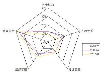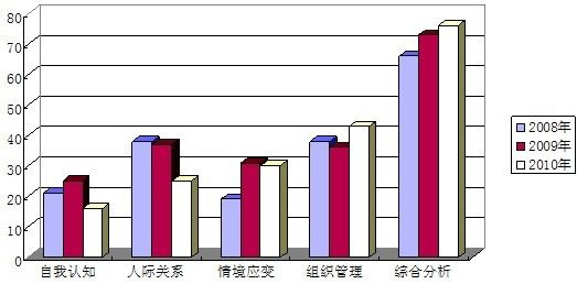 人際關系能力考察也由2009年的18%降低到2010年的13%,說明人際關系也漸漸淡出命題人視野??v然人際關系題目比例降低,但是難度卻隨之增加,元素更加豐富,線索更加交織,以增加考生作答難度,從而形成區(qū)別度,使得更優(yōu)秀的考生能脫穎而出。