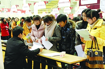 日前,江蘇技術(shù)師范學(xué)院在該校體育館舉行師資專場(chǎng)招聘會(huì),100余家學(xué)校來校招聘畢業(yè)生,為畢業(yè)生提供了近600多個(gè)就業(yè)崗位。據(jù)統(tǒng)計(jì),江蘇技術(shù)師范學(xué)院2011屆畢業(yè)生有3780人,其中師范生531人,用人單位為動(dòng)手能力強(qiáng)的學(xué)生敞開大門。